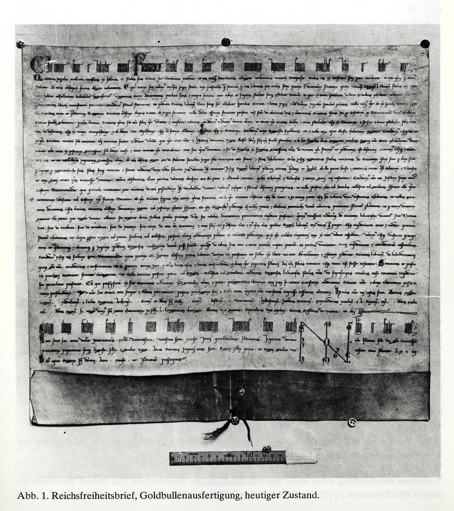 Reichsfreiheitsurkunde aus: "Lübeck 1226" (Repro: D. Deubner)