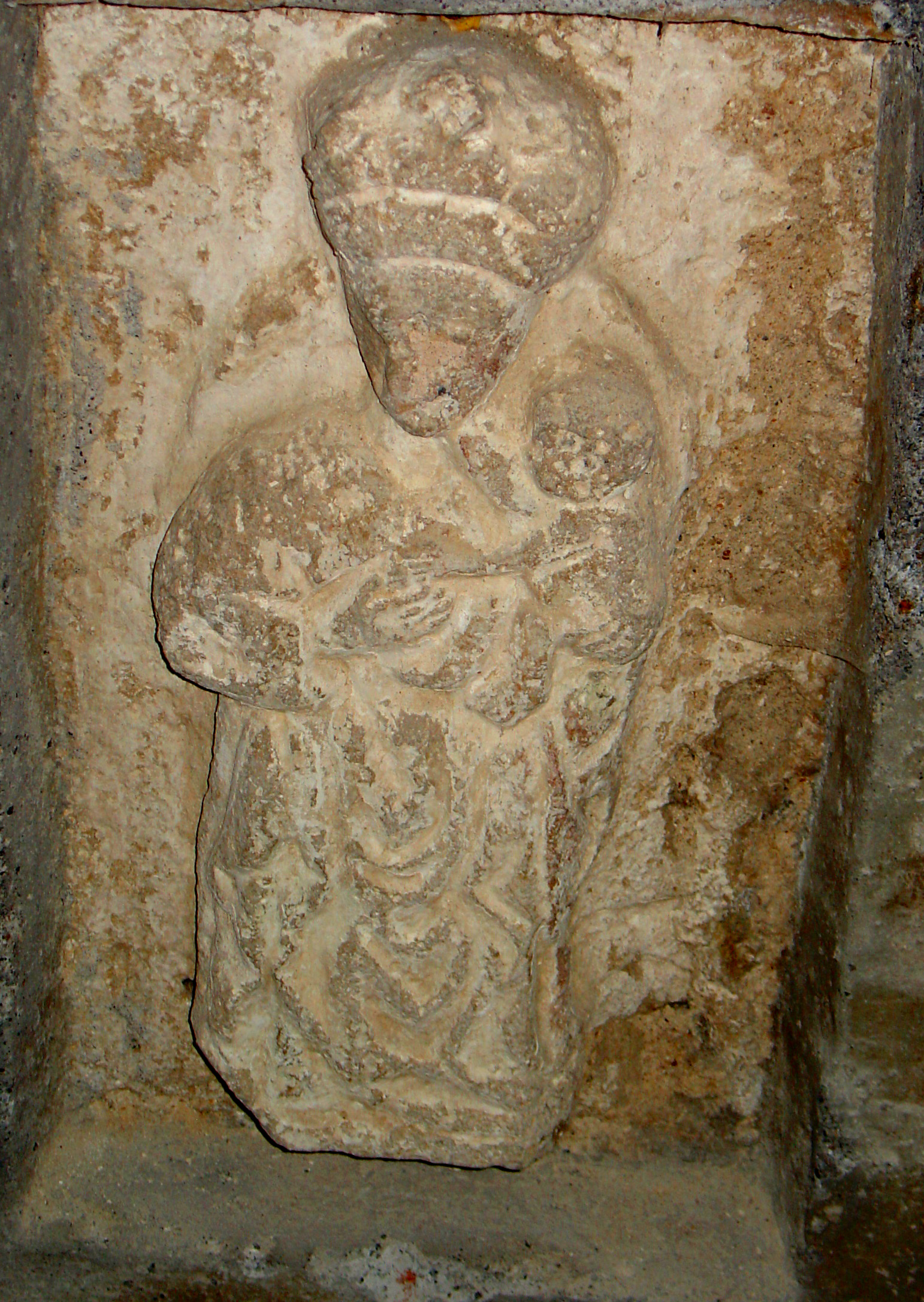 Das geschah ein Jahrhundert vor Hermann von Salzas Geburt und war zu seiner Zeit sicher noch nicht vergessen. Die Einwohner von Salza und auch die Herren von Salza werden diese Kirche aufgesucht haben, denn sie war bis Ende des 12. Jahrhunderts wohl die einzige Kirche des Dorfes. Und sie werden in der Kirche vor der Mutter Maria gebetet haben. Diese Madonna wurde ebenfalls in die Gottesackerkirche übernommen. Sie wurde über der Stelle des Grundsteins in die Ostwand eingesetzt. Ein Hochrelief aus Kalkstein zeigt die gekrönte Mutter Maria mit dem Jesusknaben auf dem Arm. Das ist für mich das oben erwähnte Kleinod, das viele Bad Langensalzaer gar nicht kennen. Vielleicht hat diese "Mutter Gottes" Hermann von Salza die Kraft gegeben, seinen Orden, der sich "Brüder vom deutschen Hospital der Heiligen Maria in Jerusalem" nannte, während seiner Hochmeisterzeit zu einem bedeutenden und geachteten Ritterorden in Europa zu entwickeln.