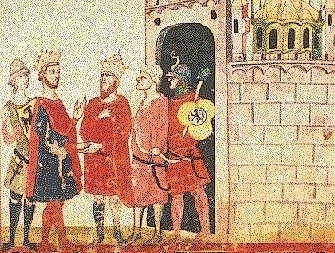 " Friedrich II. trifft den Sultan Al-Kamil" aus der Chronik von Villani - aus www.stupormundi.it