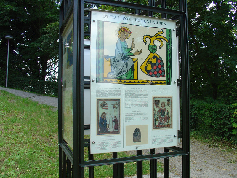 Schautafel für Otto I. von Botenlauben an der Burgruine Botenlauben über Bad Kissingen in der Rhön